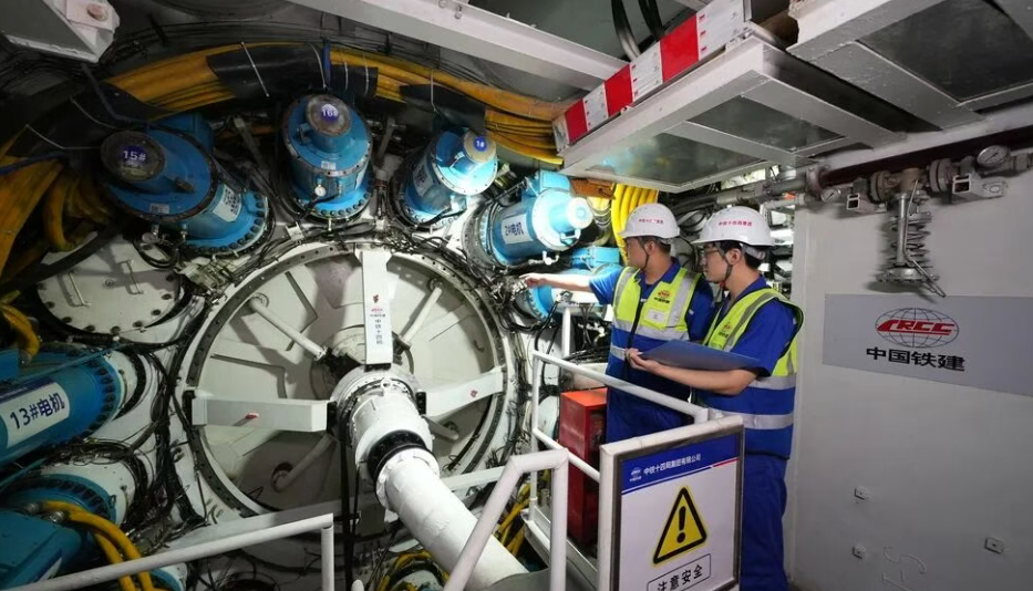 工作人员检查盾构机工作运行情况。中铁十四局供图