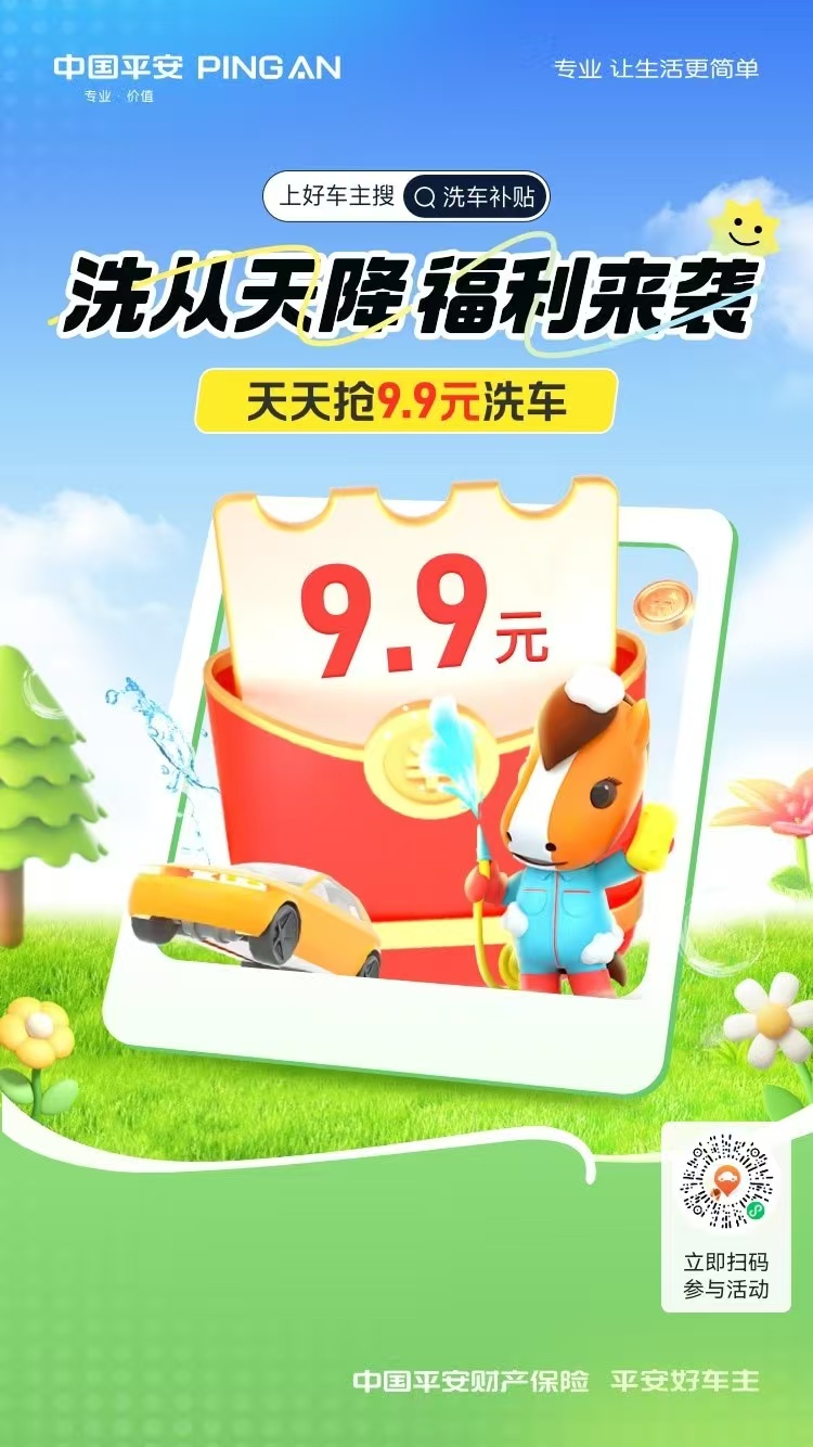 平安好车主 | 洗从天降,超值来袭,天天抢9.9元洗车福利