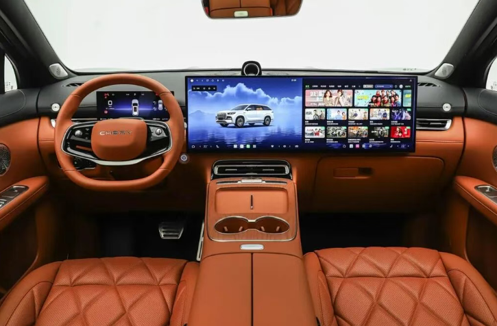 内饰方面,整个中控台重新设计,新车换装了更大尺寸的中控与副驾双联屏,方向盘也换装全新的设计,并改用怀挡设计,空调出风口也采用了全新的样式。新车座椅改为更华丽的菱形缝线装饰,车门新增扬声器数量,并且电动调节按键也改在座椅上,新车还提供了女王副驾。