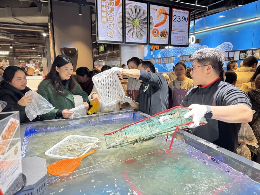 同时,门店精选高频日常商品,在保障卓越品质的基础上维持亲民价格:蔬果区大蒜3.99元/斤,金秋砂糖橘4.99元/斤;熟食区香辣黄油鸡腿堡仅7.9元/个,奥尔良烤鸡21.9元/只;此外,五谷杂粮鲜鸡蛋(20枚)9.9元/盒,鲜牛腩29.9元/斤,帝王蟹2-2.5kg 899元/只,海水石斑鱼49.9元/条,从基础食材到高品质水产,全方位满足家庭日常所需,让品质生活触手可及。
